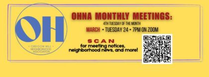 Oregon Hill Neighborhood Association (OHNA) meets tomorrow night over the internet.